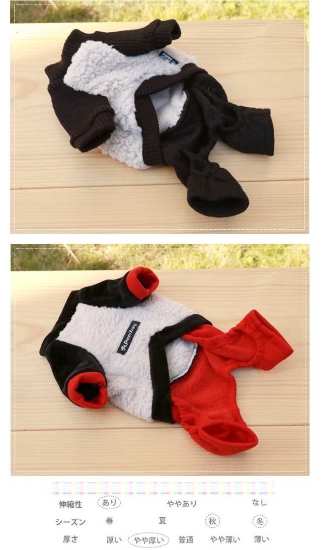 洋服のデザイン、また愛犬の個体差や毛量によって若干サイズが異なる場合がございますので、事前にワンちゃんのサイズを測った上でご検討下さい