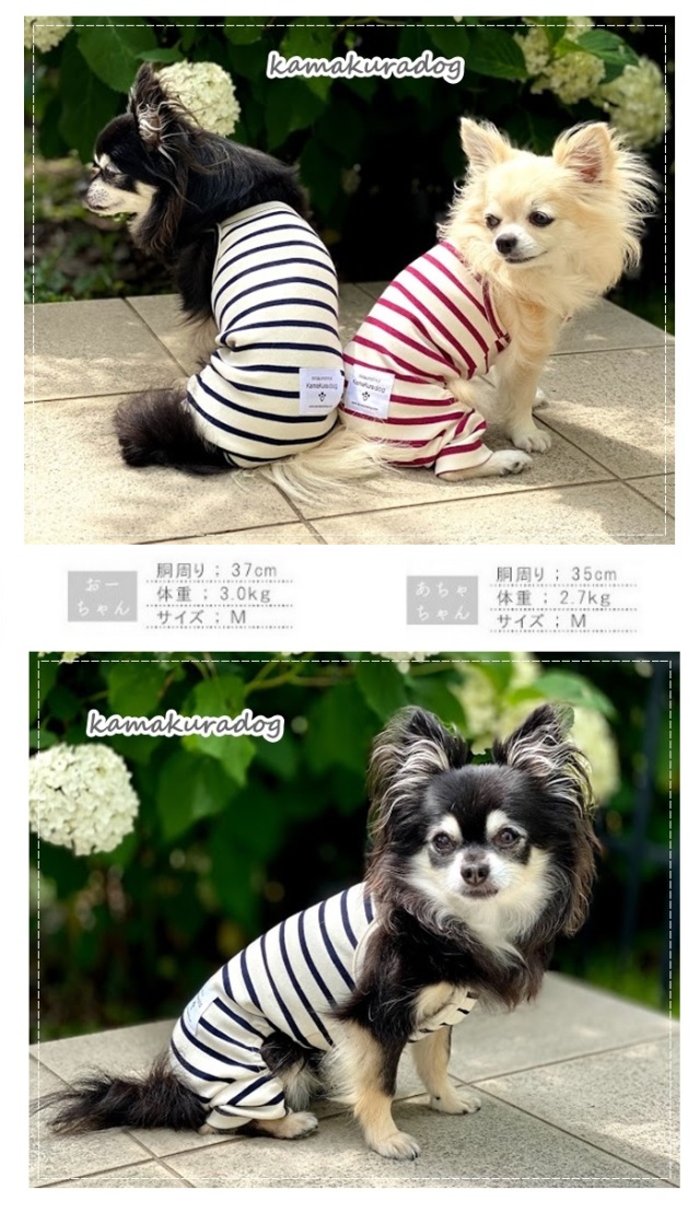 洋服のデザイン、また愛犬の個体差や毛量によって若干サイズが異なる場合がございますので、事前にワンちゃんのサイズを測った上でご検討下さい。