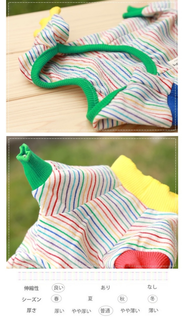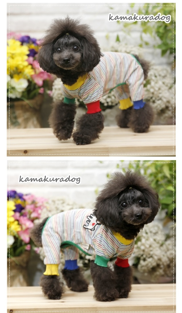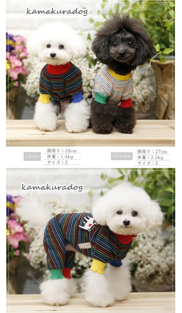 洋服のデザイン、また愛犬の個体差や毛量によって若干サイズが異なる場合がございますので、事前にワンちゃんのサイズを測った上でご検討下さい。