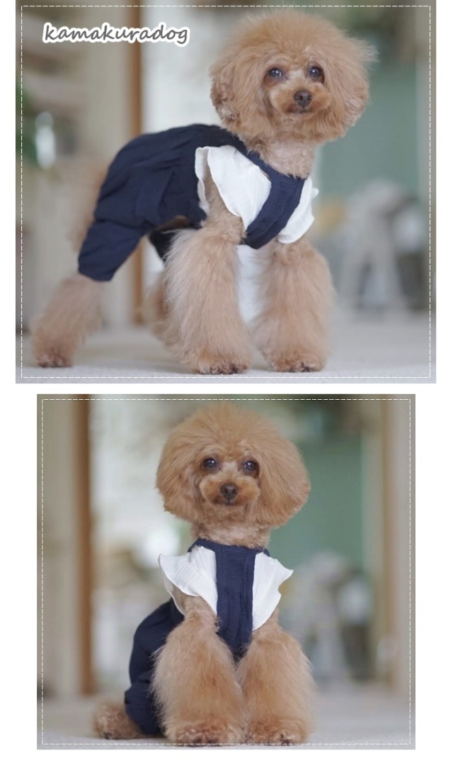 洋服のデザイン、また愛犬の個体差や毛量によって若干サイズが異なる場合がございますので、事前にワンちゃんのサイズを測った上でご検討下さい。