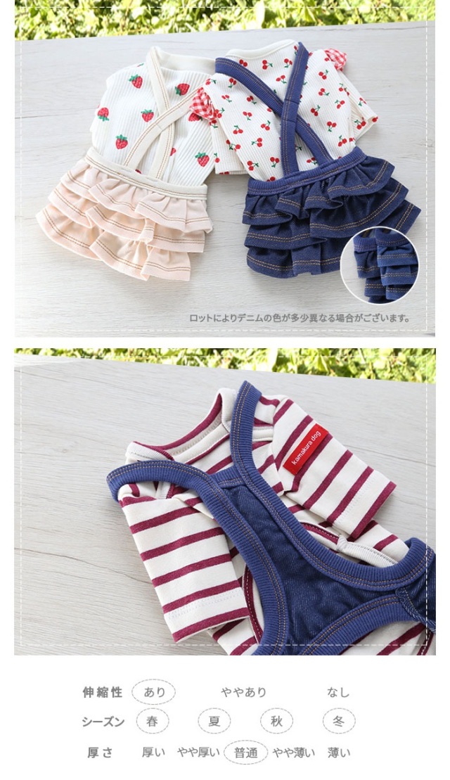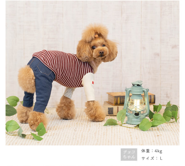 洋服のデザイン、また愛犬の個体差や毛量によって若干サイズが異なる場合がございますので、事前にワンちゃんのサイズを測った上でご検討下さい。