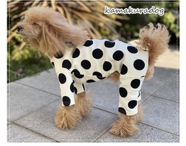 すごく可愛いです!生地も厚すぎず、伸びも有り着せやすいです、ドット柄が大きいかな?と不安でしたが、またそれがすごく可愛くて本当に良かったです(^o^)v