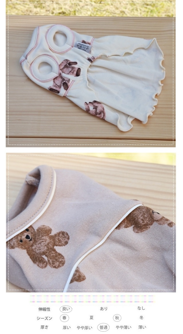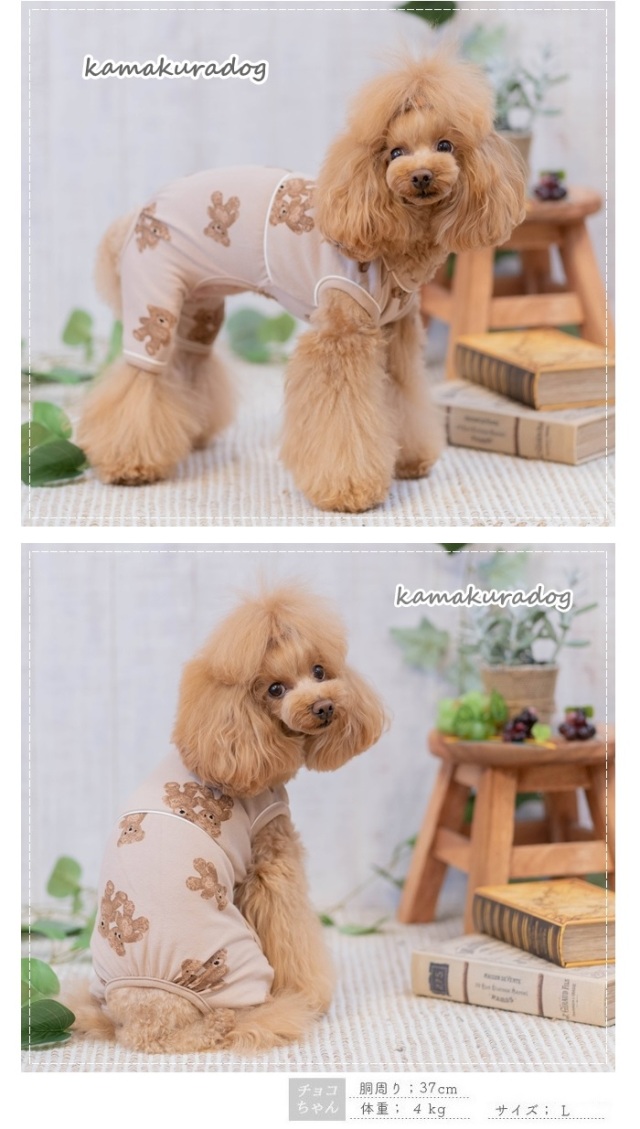 洋服のデザイン、また愛犬の個体差や毛量によって若干サイズが異なる場合がございますので、事前にワンちゃんのサイズを測った上でご検討下さい。