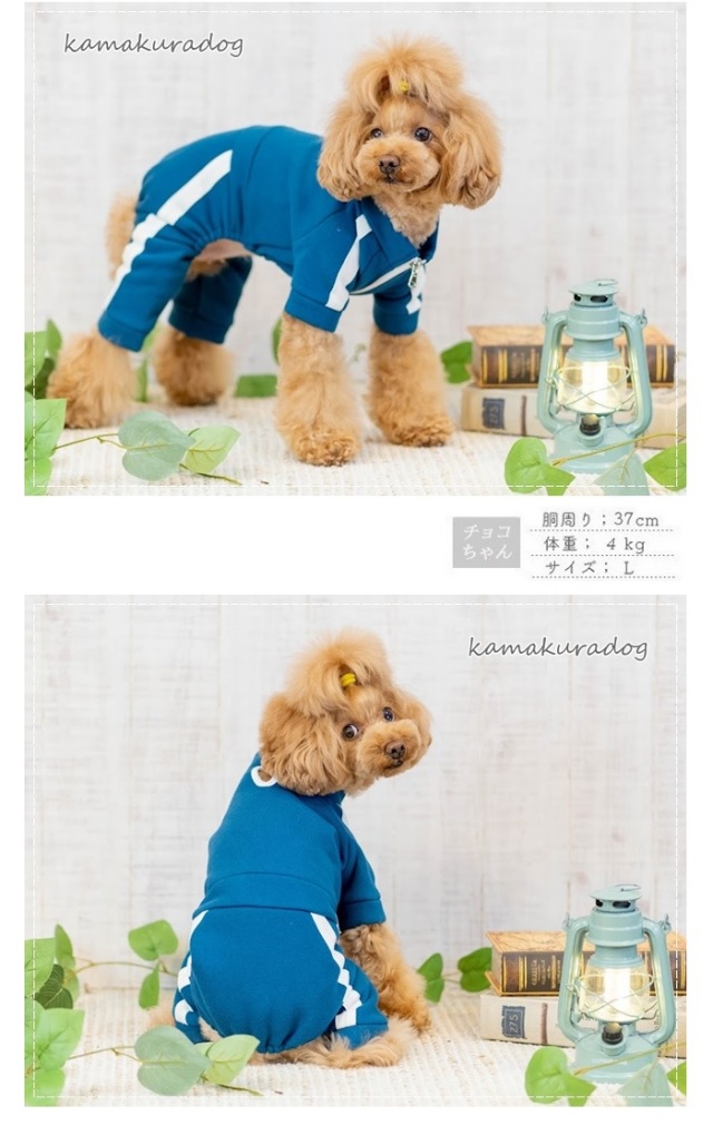 洋服のデザイン、また愛犬の個体差や毛量によって若干サイズが異なる場合がございますので、事前にワンちゃんのサイズを測った上でご検討下さい。