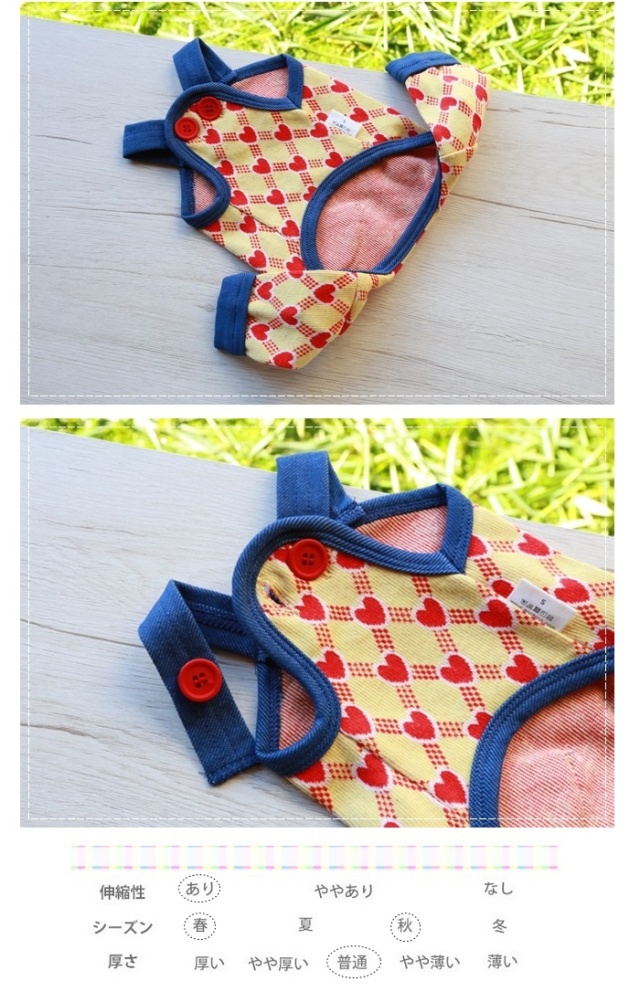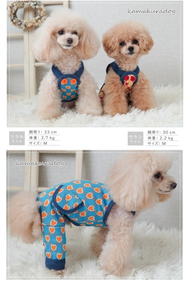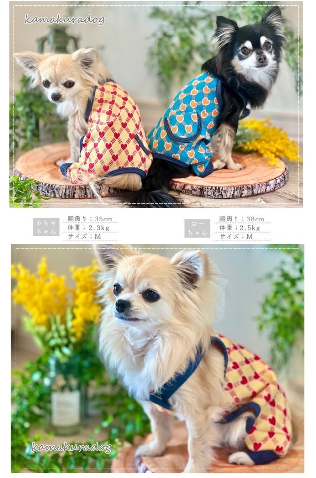 洋服のデザイン、また愛犬の個体差や毛量によって若干サイズが異なる場合がございますので、事前にワンちゃんのサイズを測った上でご検討下さい。