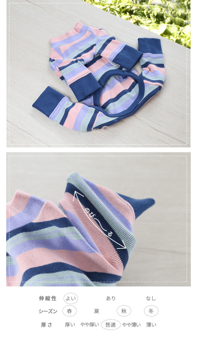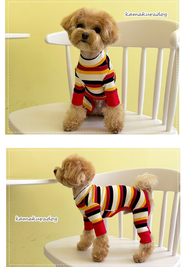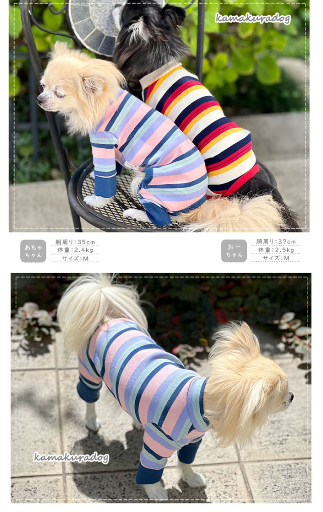 洋服のデザイン、また愛犬の個体差や毛量によって若干サイズが異なる場合がございますので、事前にワンちゃんのサイズを測った上でご検討下さい。