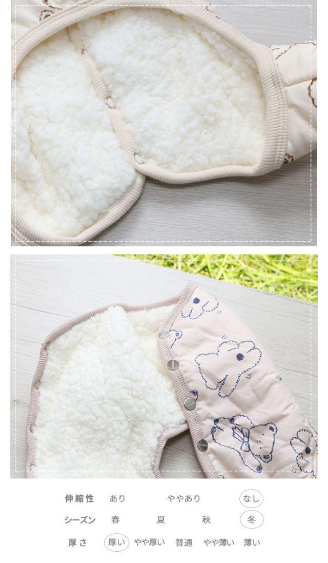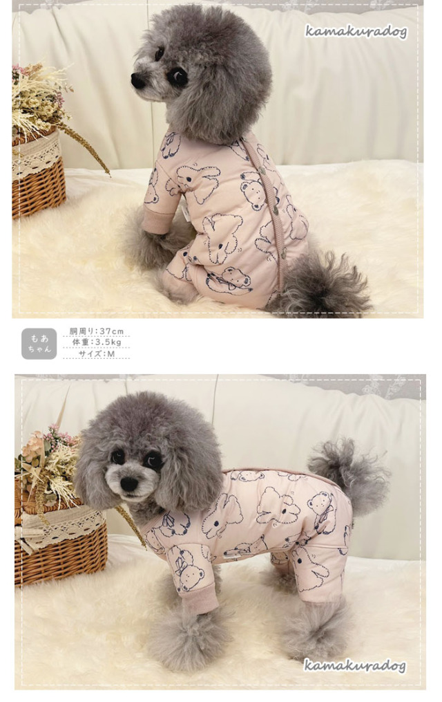 洋服のデザイン、また愛犬の個体差や毛量によって若干サイズが異なる場合がございますので、事前にワンちゃんのサイズを測った上でご検討下さい。