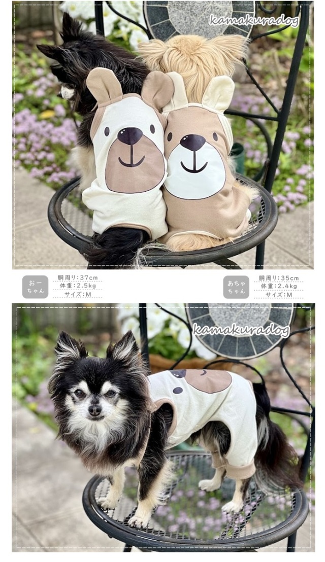 洋服のデザイン、また愛犬の個体差や毛量によって若干サイズが異なる場合がございますので、事前にワンちゃんのサイズを測った上でご検討下さい。