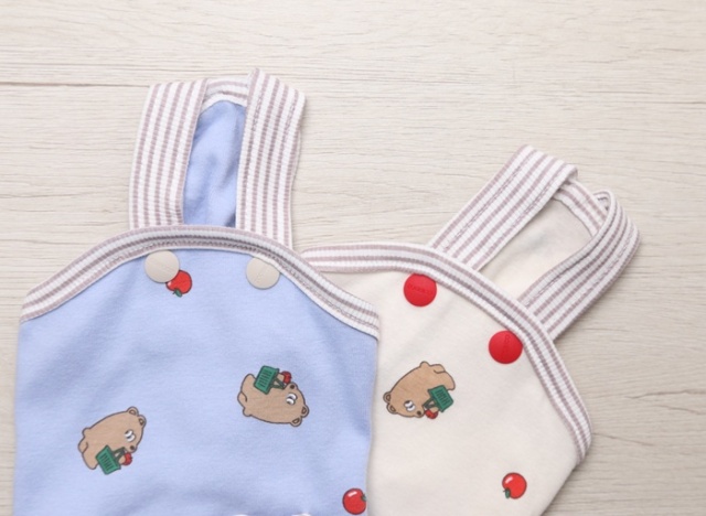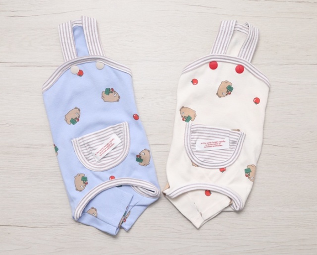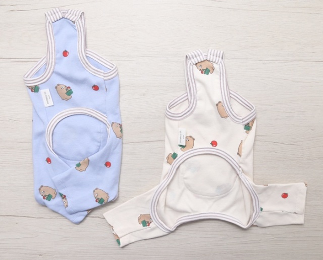 着せるのはちょっと難しくて苦戦する感じですが、脱ぐ時はボタンをプチプチ外したら簡単に脱げるようになってて便利です!デザインや淡い色味もかわいくて満足です> <?