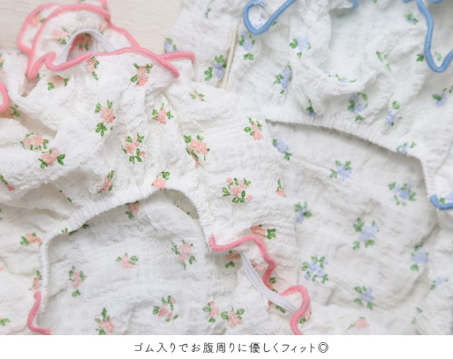 伸縮性があり、くしゅっとして凹凸のある生地はやさしい肌あたり。
