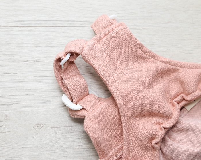 胴周りはスナップボタンやマジックテープで調整可能&脱ぎ着もラクチン。