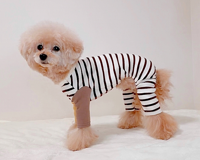 洋服のデザイン、また愛犬の個体差や毛量によって若干サイズが異なる場合がございますので、事前にワンちゃんのサイズを測った上でご検討下さい。