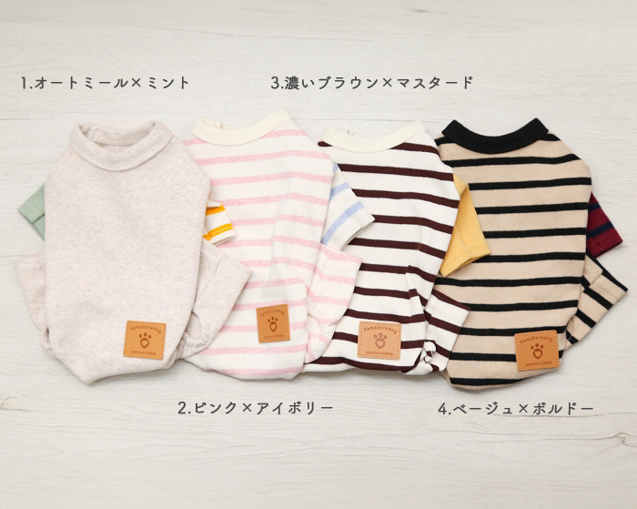 シンプルなボーダー柄に色違いの袖を組み合わせ、遊び心のあるおしゃれなデザインに仕上げました。