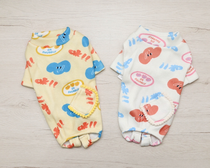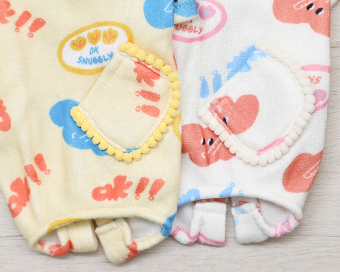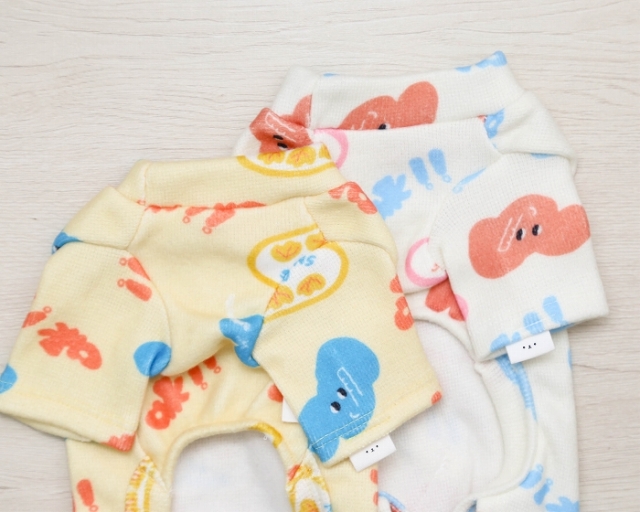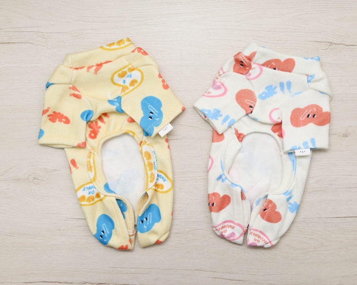 後ろ足は輪っかに通すタイプなので、つなぎが苦手なわんちゃんにもおすすめ。