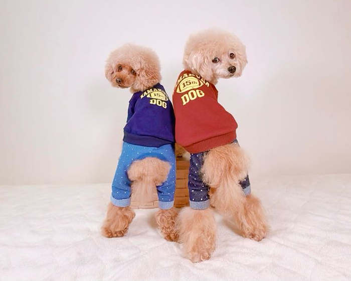 洋服のデザイン、また愛犬の個体差や毛量によって若干サイズが異なる場合がございますので、事前にワンちゃんのサイズを測った上でご検討下さい。
