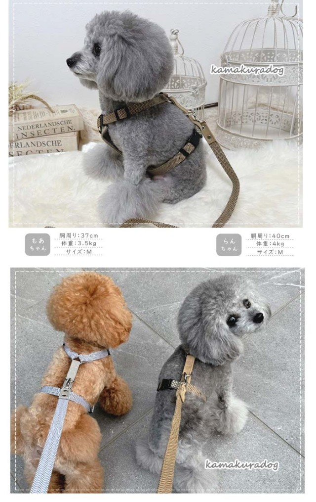 洋服のデザイン、また愛犬の個体差や毛量によって若干サイズが異なる場合がございますので、事前にワンちゃんのサイズを測った上でご検討下さい。