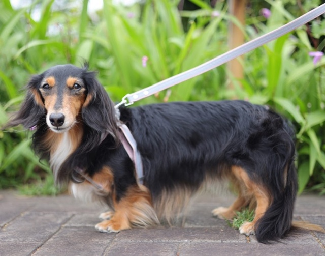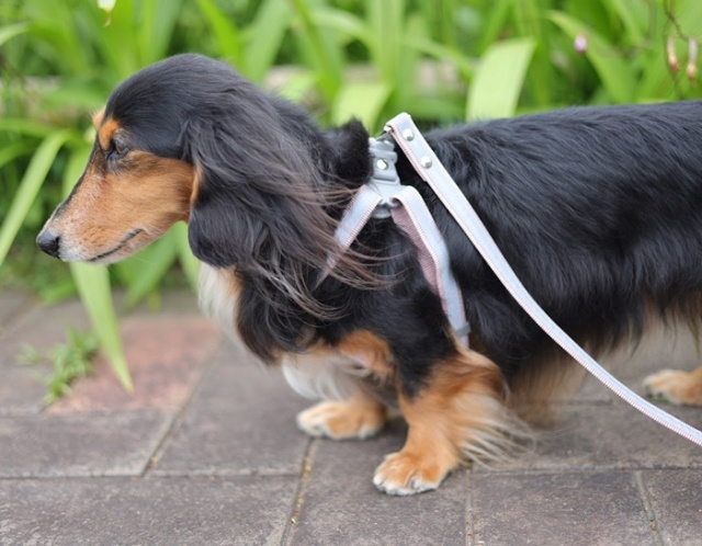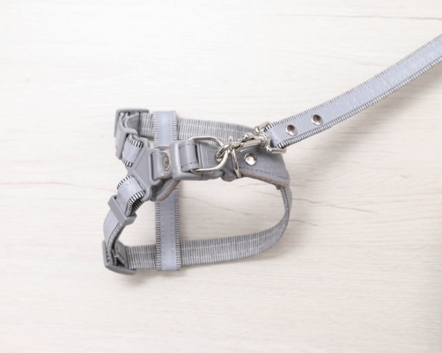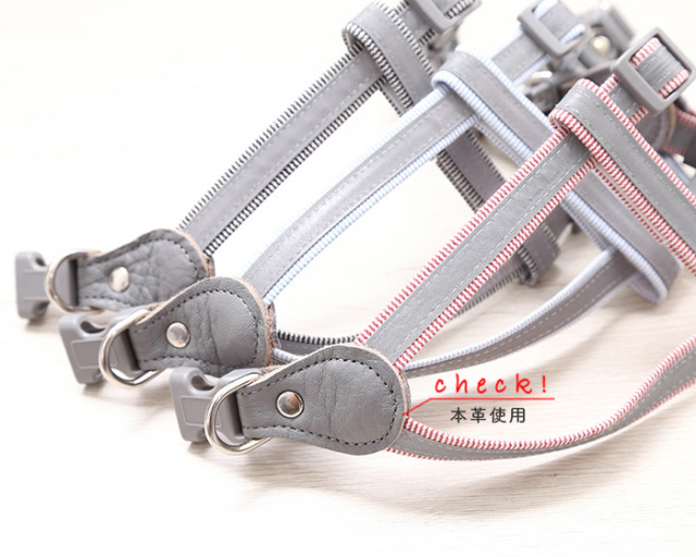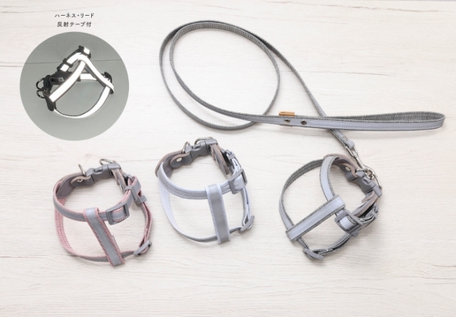 リードとハーネスには反射テープを使用。夜間や早朝のお散歩でも安全性アップ!