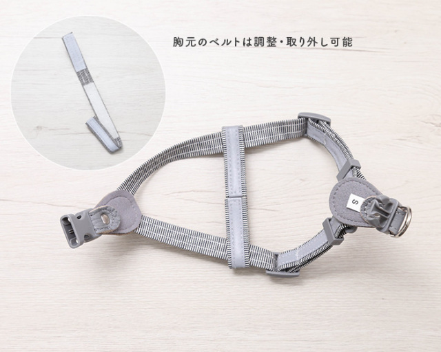 愛犬の体型に合わせてご使用いただけます。胸元のベルトも取り外し可能です。