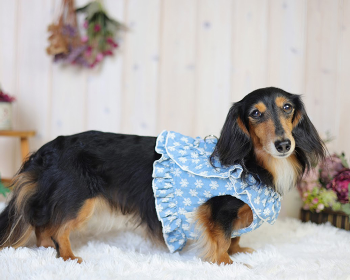 洋服のデザイン、また愛犬の個体差や毛量によって若干サイズが異なる場合がございますので、事前にワンちゃんのサイズを測った上でご検討下さい。