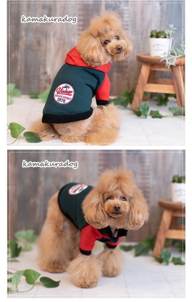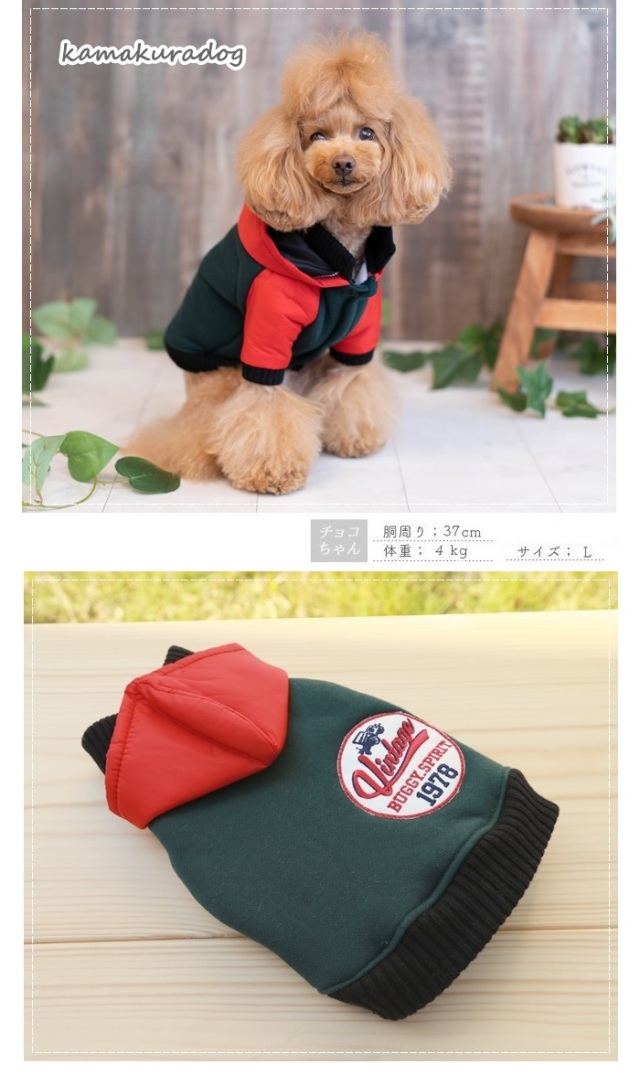 洋服のデザイン、また愛犬の個体差や毛量によって若干サイズが異なる場合がございますので、事前にワンちゃんのサイズを測った上でご検討下さい。