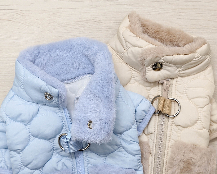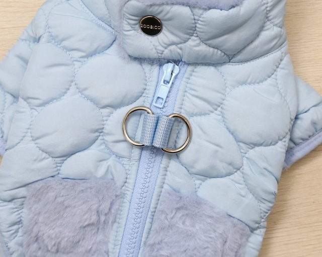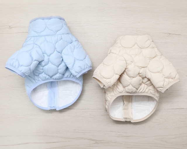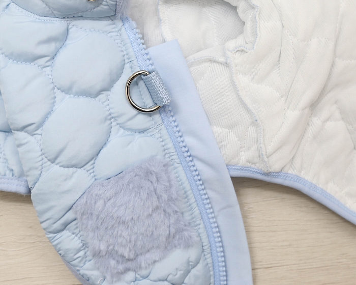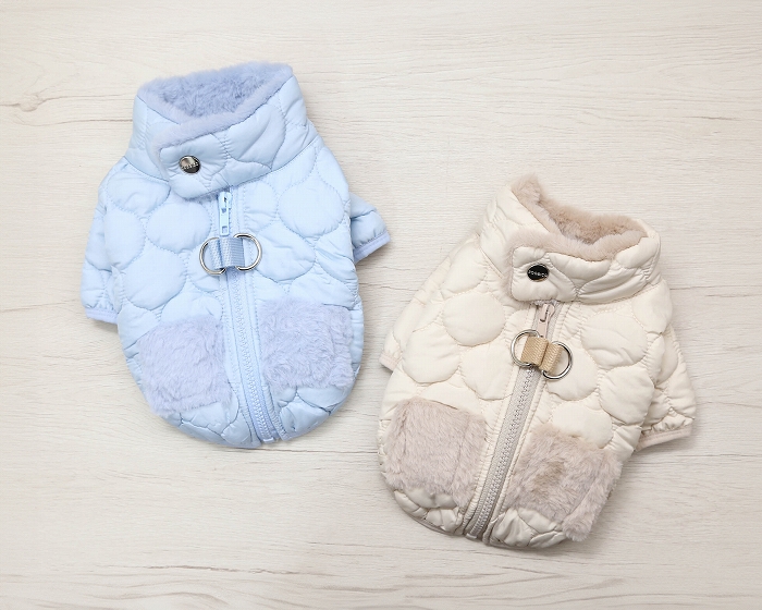ふっくらとしたキルティングが体を包み込み、寒い日のお散歩もぬくもりたっぷり。