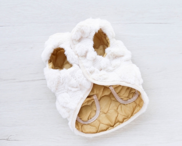 柔らかいボア素材がわんちゃんを優しく包み、寒い日のお散歩も快適に。