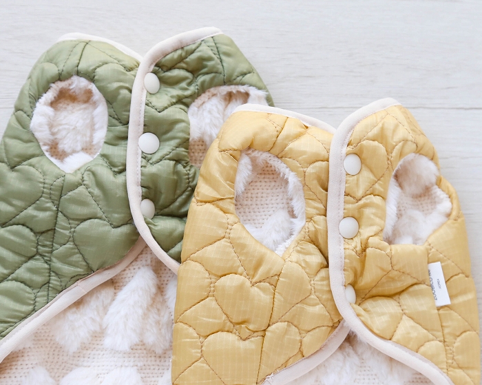 表はキルト、裏はふわふわボア。どちらを外側にしても可愛く着られる2WAYデザインです。