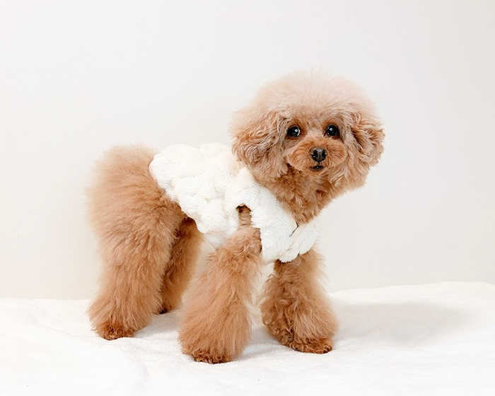 洋服のデザイン、また愛犬の個体差や毛量によって若干サイズが異なる場合がございますので、事前にワンちゃんのサイズを測った上でご検討下さい。