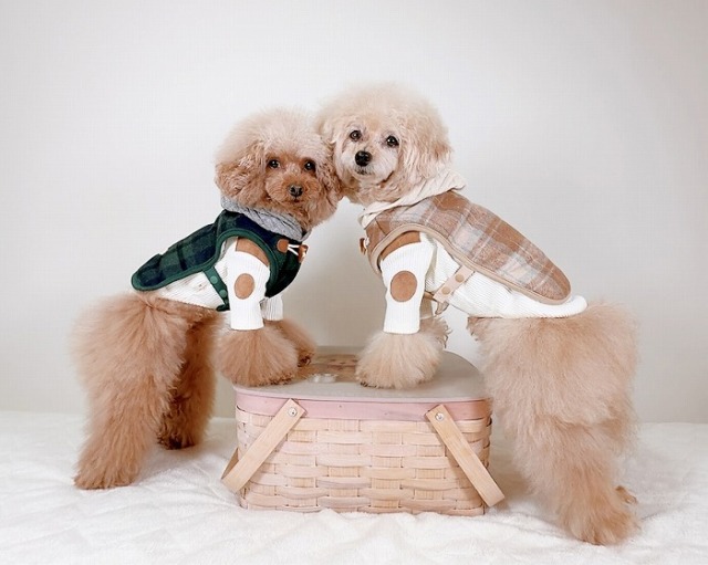 洋服のデザイン、また愛犬の個体差や毛量によって若干サイズが異なる場合がございますので、事前にワンちゃんのサイズを測った上でご検討下さい。