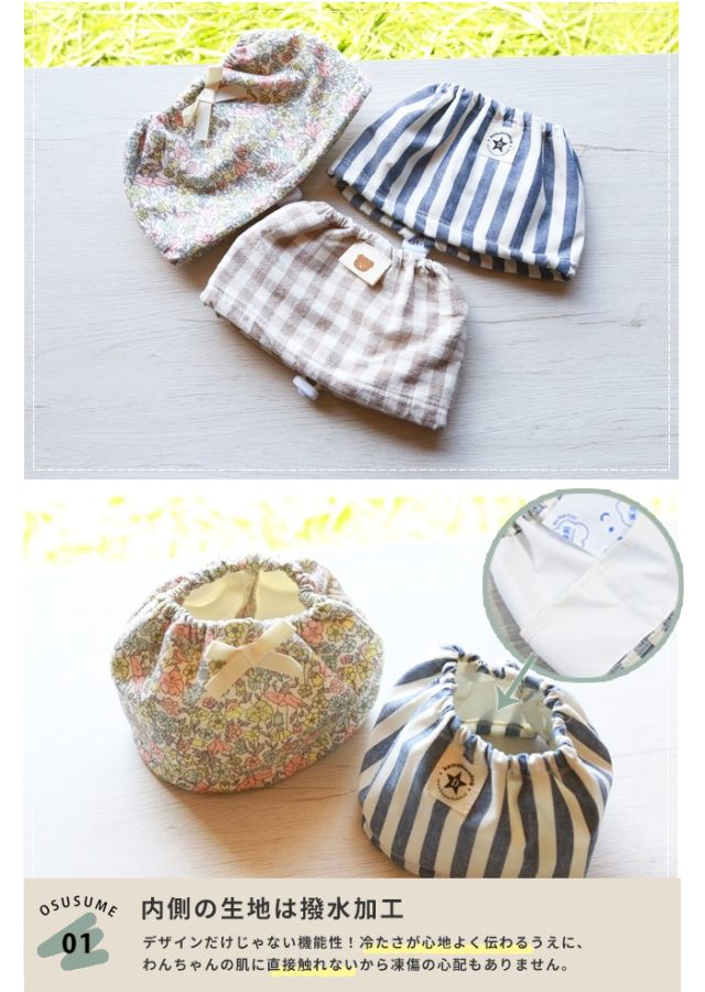 今年は絶対首回りだけでも涼しくしてあげたいという事で購入。まだ試していないので??4個ですが、4つも小さな保冷剤をポケット状の袋に一個一個入れていくみたいで、保冷剤までご丁寧に入っていました♪今年も夏を元気に乗り越え散歩楽しもうね。 |
