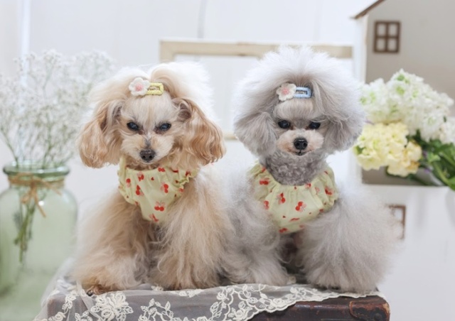 洋服のデザイン、また愛犬の個体差や毛量によって若干サイズが異なる場合がございますので、事前にワンちゃんのサイズを測った上でご検討下さい。