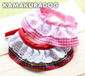 ・ギンガムチェックに白い綿レース