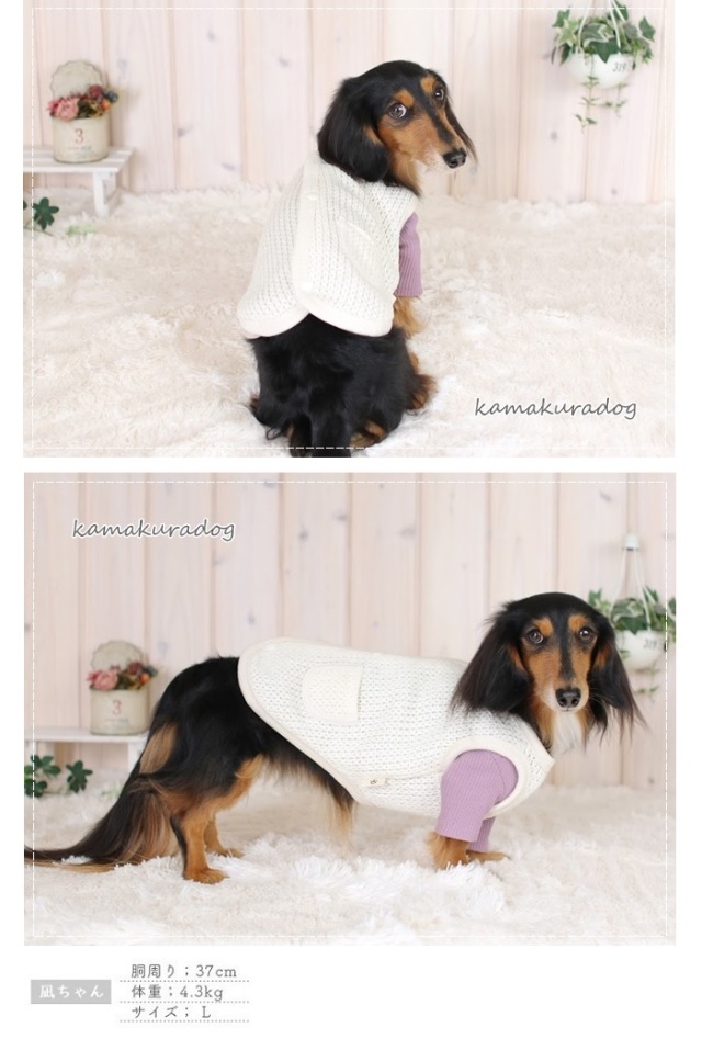 洋服のデザイン、また愛犬の個体差や毛量によって若干サイズが異なる場合がございますので、事前にワンちゃんのサイズを測った上でご検討下さい。