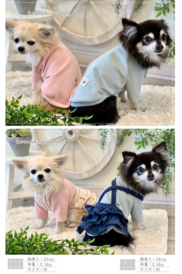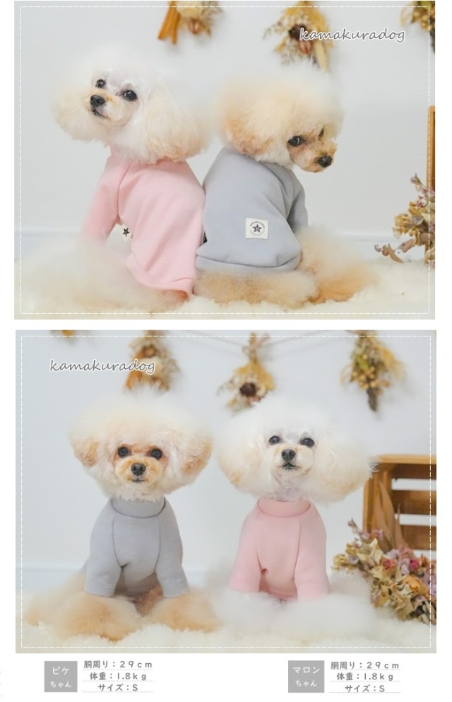 洋服のデザイン、また愛犬の個体差や毛量によって若干サイズが異なる場合がございますので、事前にワンちゃんのサイズを測った上でご検討下さい。