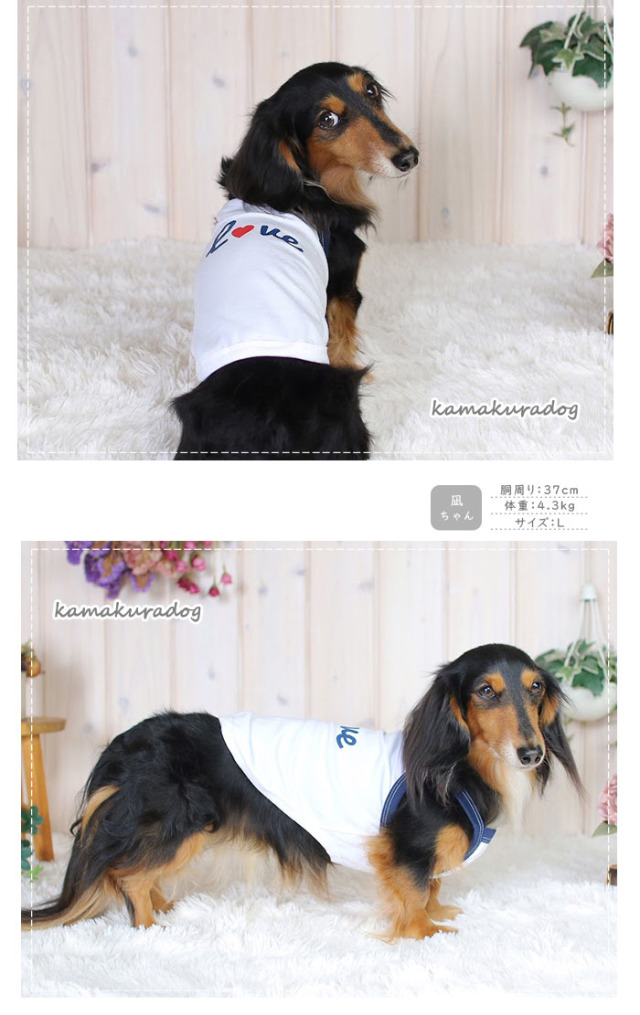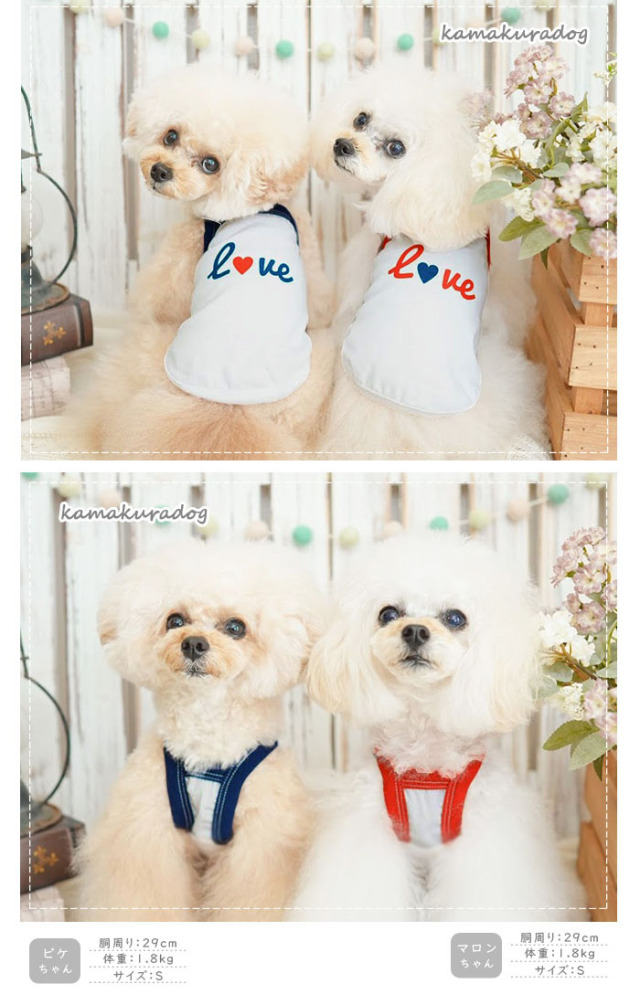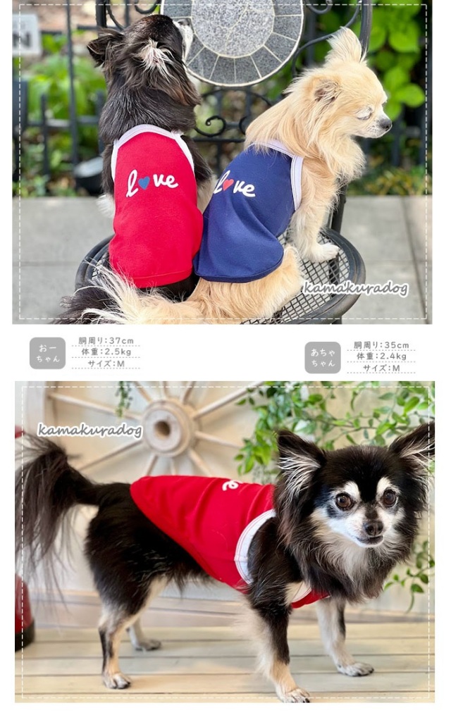 洋服のデザイン、また愛犬の個体差や毛量によって若干サイズが異なる場合がございますので、事前にワンちゃんのサイズを測った上でご検討下さい。