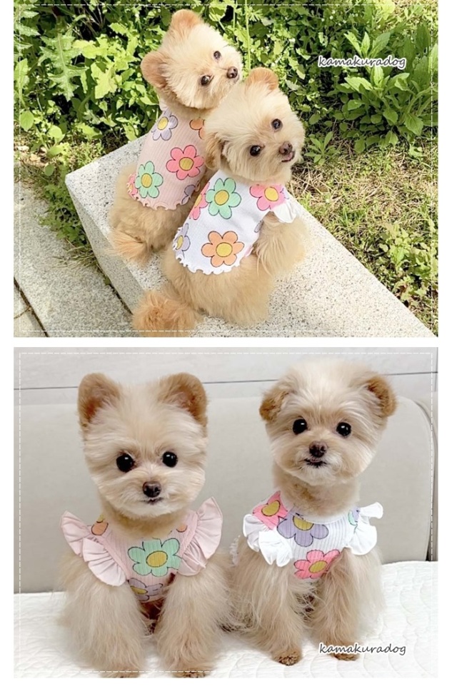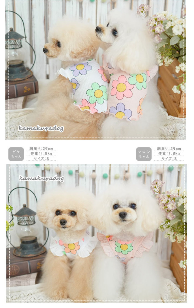 洋服のデザイン、また愛犬の個体差や毛量によって若干サイズが異なる場合がございますので、事前にワンちゃんのサイズを測った上でご検討下さい。