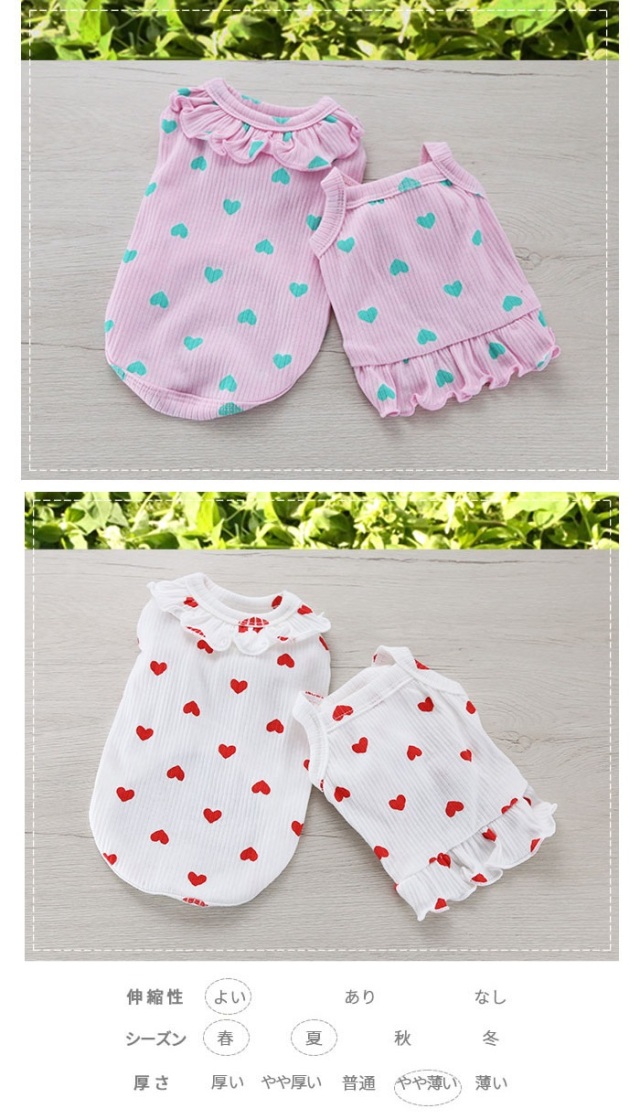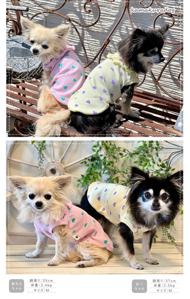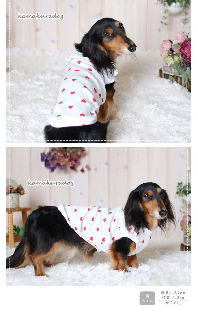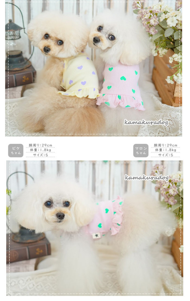 洋服のデザイン、また愛犬の個体差や毛量によって若干サイズが異なる場合がございますので、事前にワンちゃんのサイズを測った上でご検討下さい。