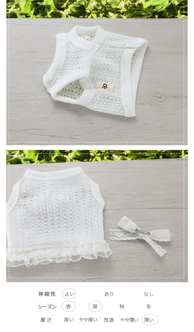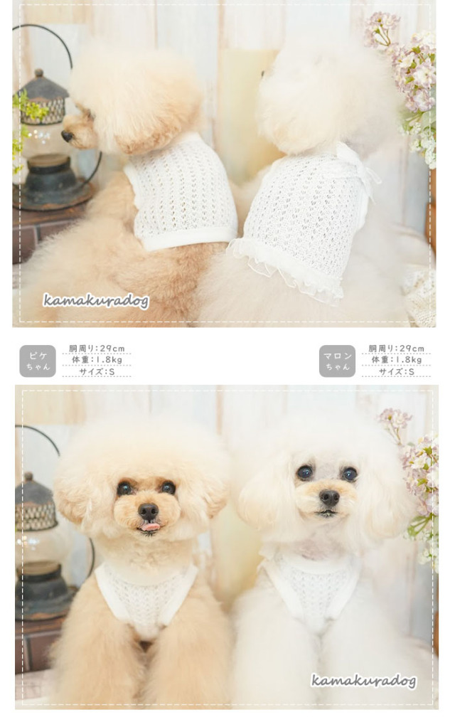洋服のデザイン、また愛犬の個体差や毛量によって若干サイズが異なる場合がございますので、事前にワンちゃんのサイズを測った上でご検討下さい。