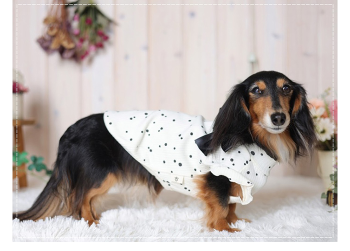 洋服のデザイン、また愛犬の個体差や毛量によって若干サイズが異なる場合がございますので、事前にワンちゃんのサイズを測った上でご検討下さい。