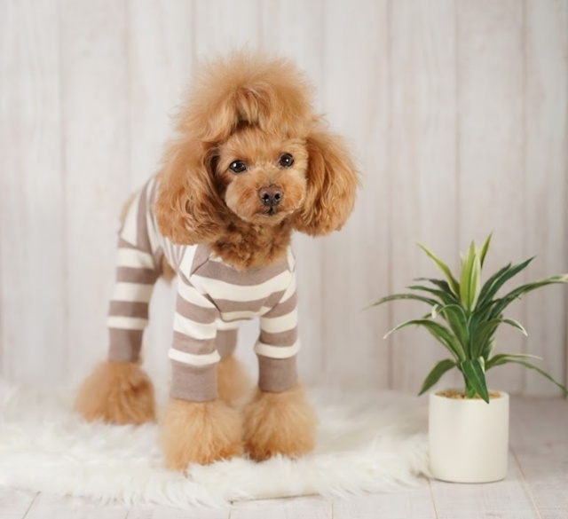 洋服のデザイン、また愛犬の個体差や毛量によって若干サイズが異なる場合がございますので、事前にワンちゃんのサイズを測った上でご検討下さい。