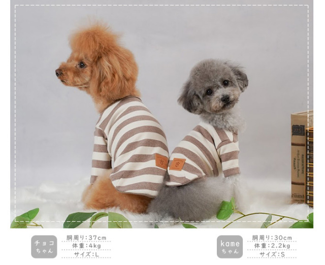 洋服のデザイン、また愛犬の個体差や毛量によって若干サイズが異なる場合がございますので、事前にワンちゃんのサイズを測った上でご検討下さい。