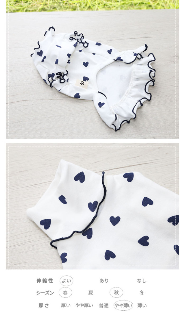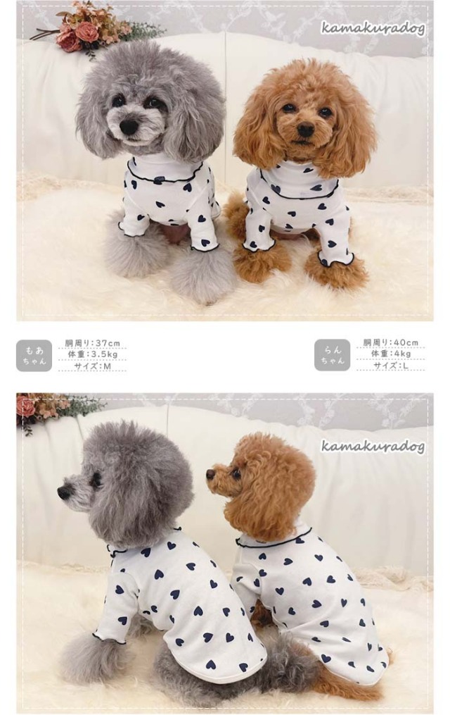 洋服のデザイン、また愛犬の個体差や毛量によって若干サイズが異なる場合がございますので、事前にワンちゃんのサイズを測った上でご検討下さい。