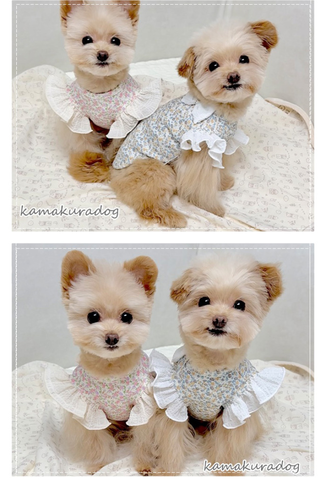 洋服のデザイン、また愛犬の個体差や毛量によって若干サイズが異なる場合がございますので、事前にワンちゃんのサイズを測った上でご検討下さい。