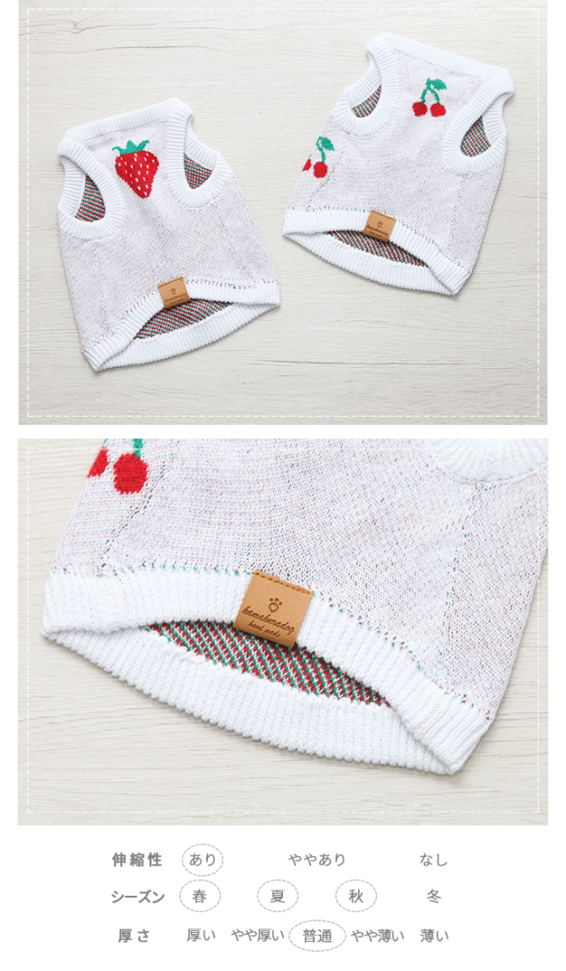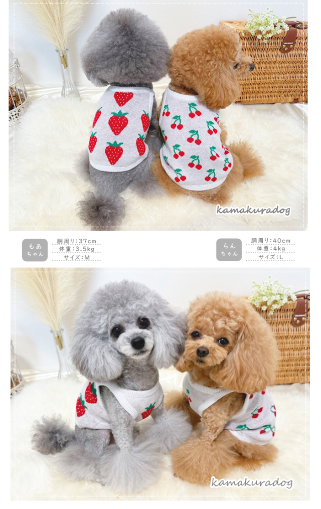 洋服のデザイン、また愛犬の個体差や毛量によって若干サイズが異なる場合がございますので、事前にワンちゃんのサイズを測った上でご検討下さい。