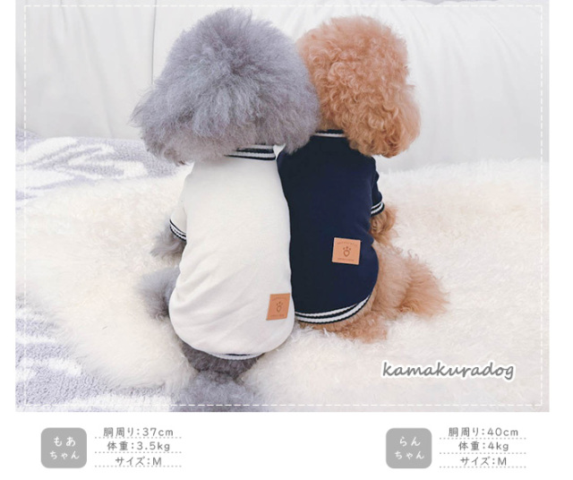 洋服のデザイン、また愛犬の個体差や毛量によって若干サイズが異なる場合がございますので、事前にワンちゃんのサイズを測った上でご検討下さい。