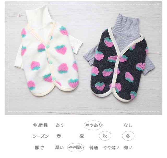 洋服のデザイン、また愛犬の個体差や毛量によって若干サイズが異なる場合がございますので、事前にワンちゃんのサイズを測った上でご検討下さい。