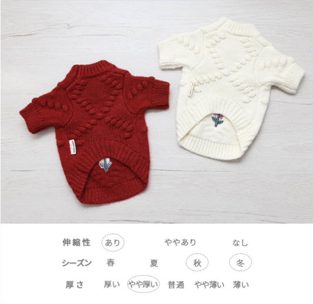 洋服のデザイン、また愛犬の個体差や毛量によって若干サイズが異なる場合がございますので、事前にワンちゃんのサイズを測った上でご検討下さい。