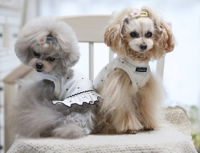 洋服のデザイン、また愛犬の個体差や毛量によって若干サイズが異なる場合がございますので、事前にワンちゃんのサイズを測った上でご検討下さい。