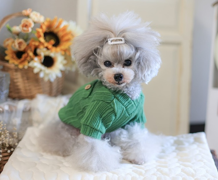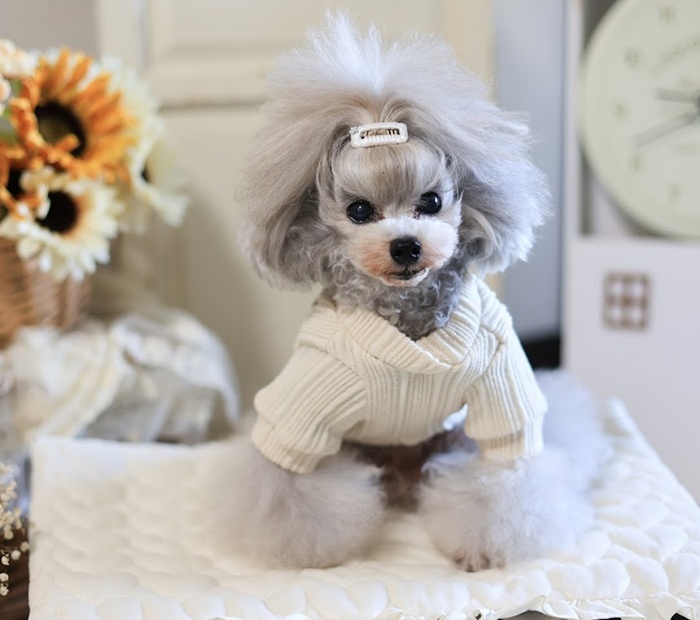 秋冬にぴったりなリブニットです。フィットしやすく、寒い日のお散歩や室内でも快適に◎