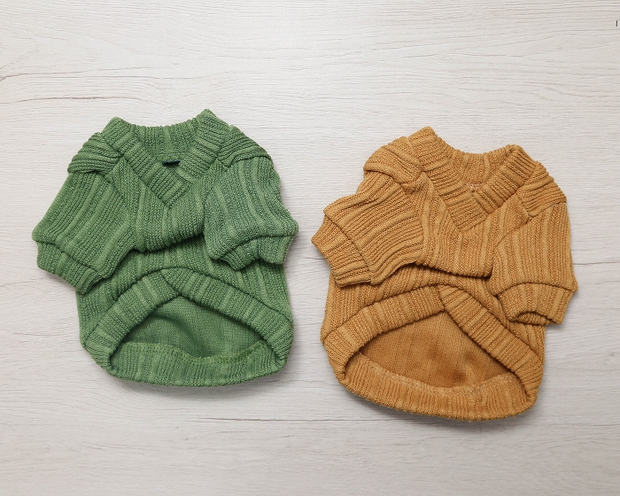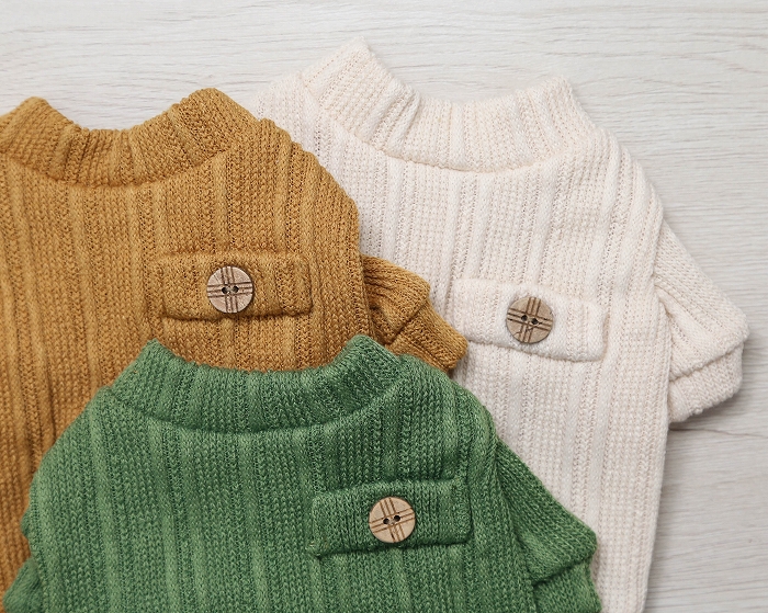 アイボリー・グリーン・マスタードの3色展開♪兄弟犬・姉妹犬との色違いコーデで、季節感たっぷりのリンクスタイルが楽しめます。